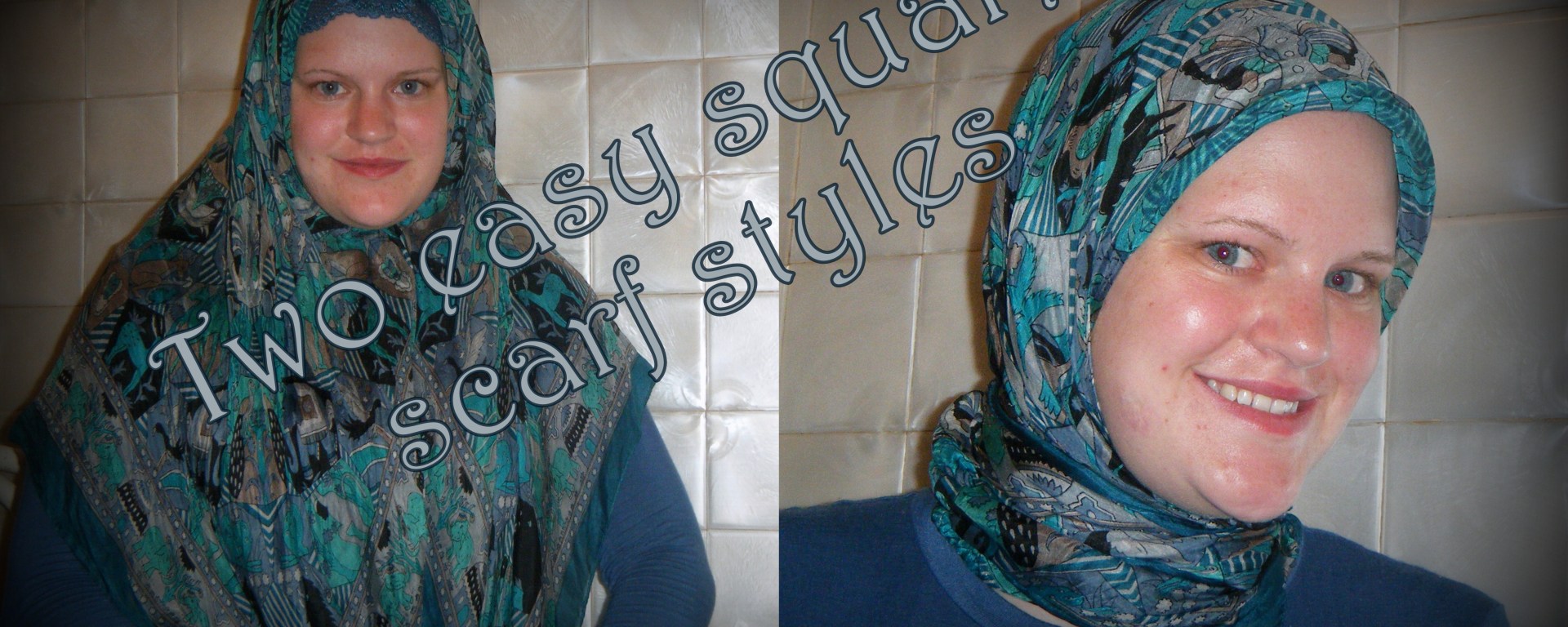 Square scarves are widely available the world over and used in a number of different styles. Here are some simple styles using a square scarf which can be replicated with most any square scarf! These styles can be done with or without an under-scarf though I advise wearing one if using slippery fabric such as silk.