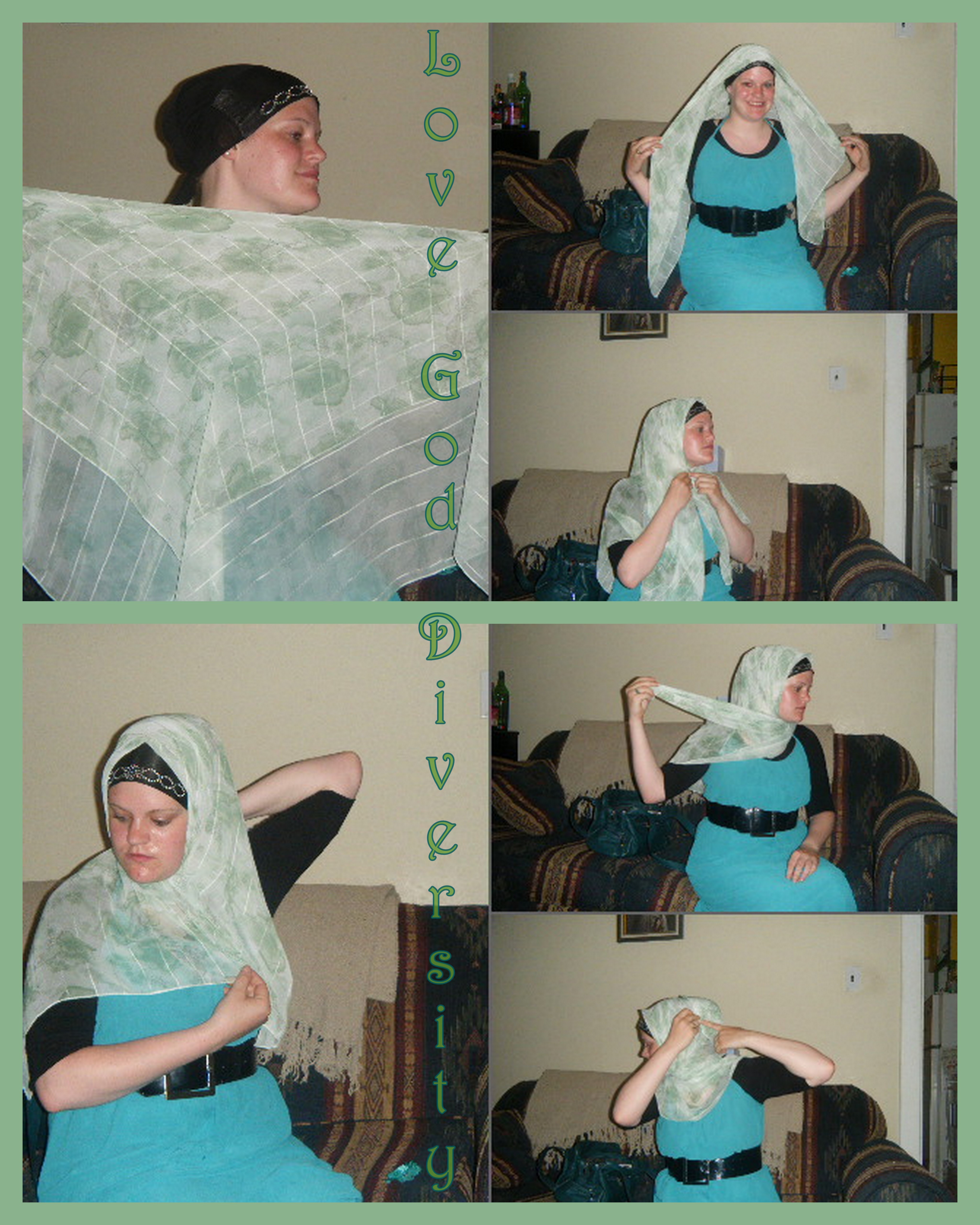I have been lucky enough to be able to see Wicked – The Musical, here in Ottawa. First and foremost, you will need to create volume. You can’t defy gravity with a flat hijab! So use your technique of choice, in these pictures, I’ve used a scarf bunched up inside a bonnet. Alright, let’s do it!