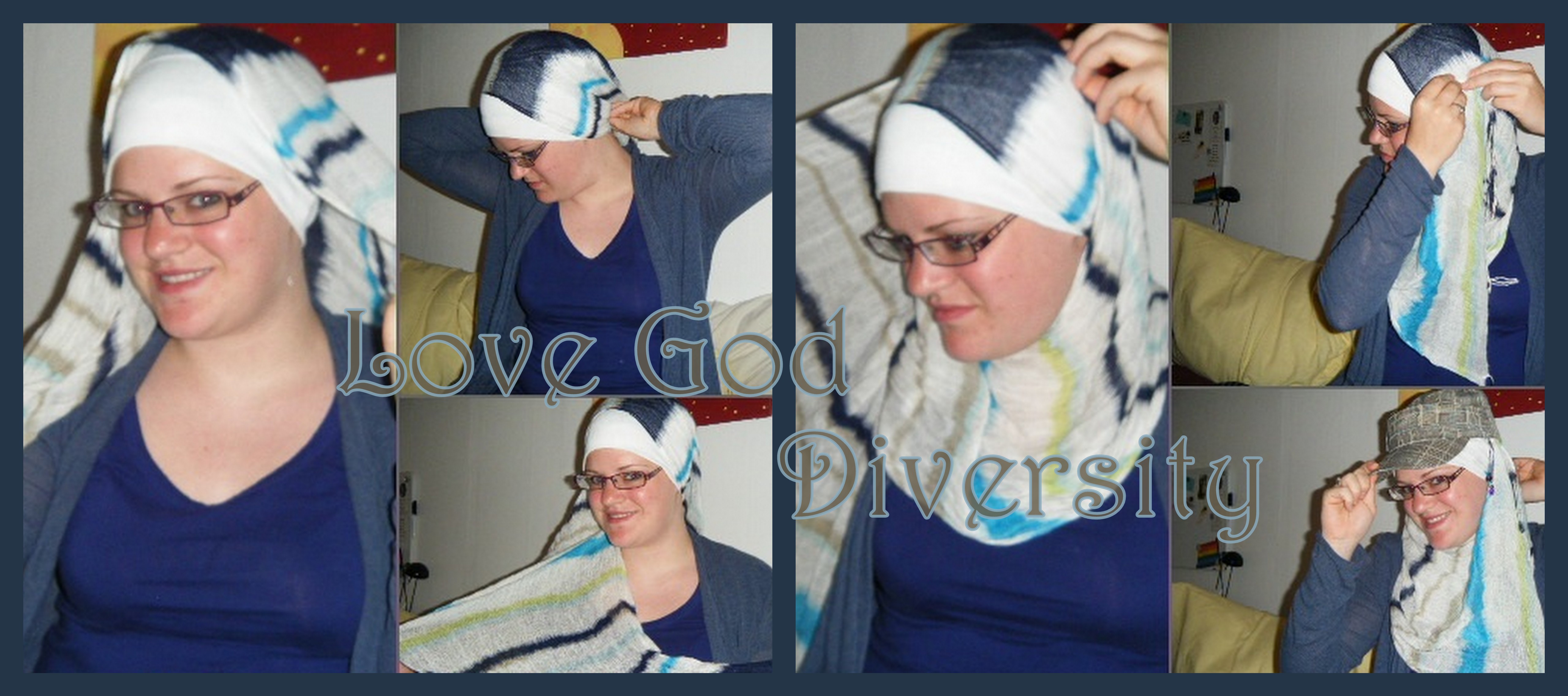As the fall arrives we take out warmer scarves and brave rain, snow and warmth within the same day. This style uses a cotton shawl which is an amazing fabric for fall, warm for the freezing weather, but breathable for the warmer weather. I’ve combine this look with a simple cap from Ardene’s (consult how to: colour combination for some tips on matching your scarf, cap and under-scarf). I love this for rainy days, especially when I wear my glasses – finally featured in a tutorial.