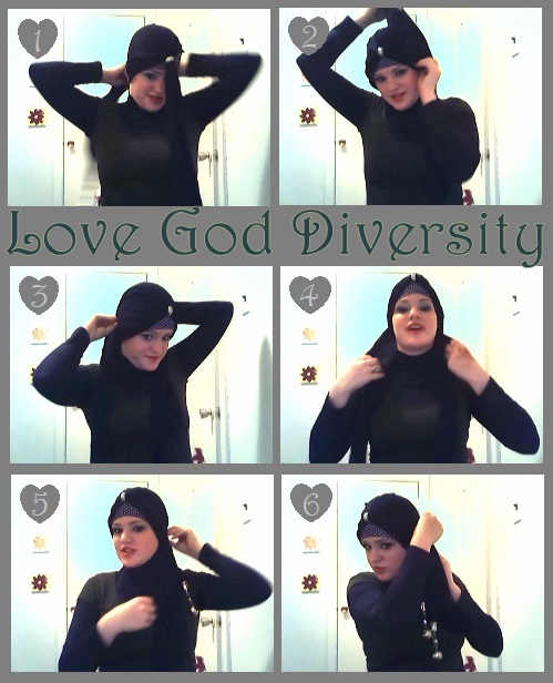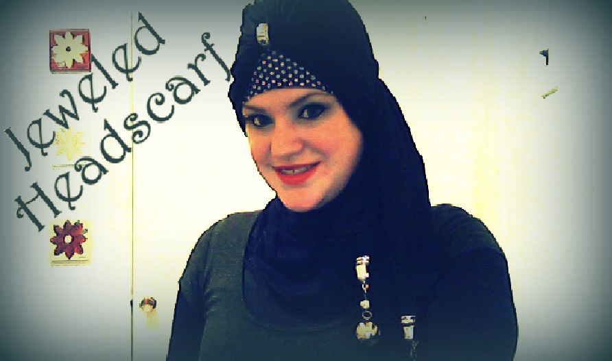 So I’ve mentioned jeweled scarves in Scarves: Shapes, sizes and types (Oh my!) and I’ve been asked how to style them. There’s a number of different ways but this particular styles is quite fashionable and provides good amounts of coverage.
