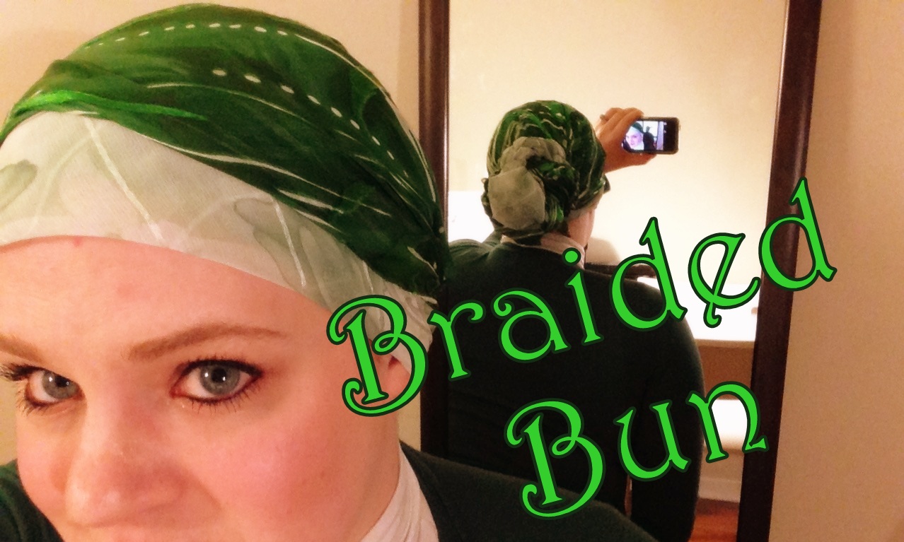 This style uses two square scarves, pinned onto a cotton tube under-scarf.
